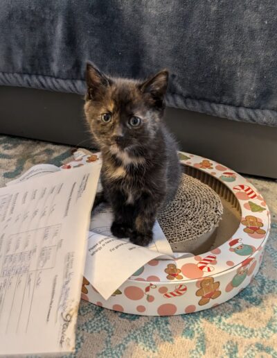 Before being listed for adoption, every 9 Lives Rescue kitten or cat has received a thorough medical exam and given any needed treatment. Every cat is spayed or neutered and is up to date on vaccines. Each adoptable cat is listed on the website with a ‘biography’ so you can learn about their personality and preferences.