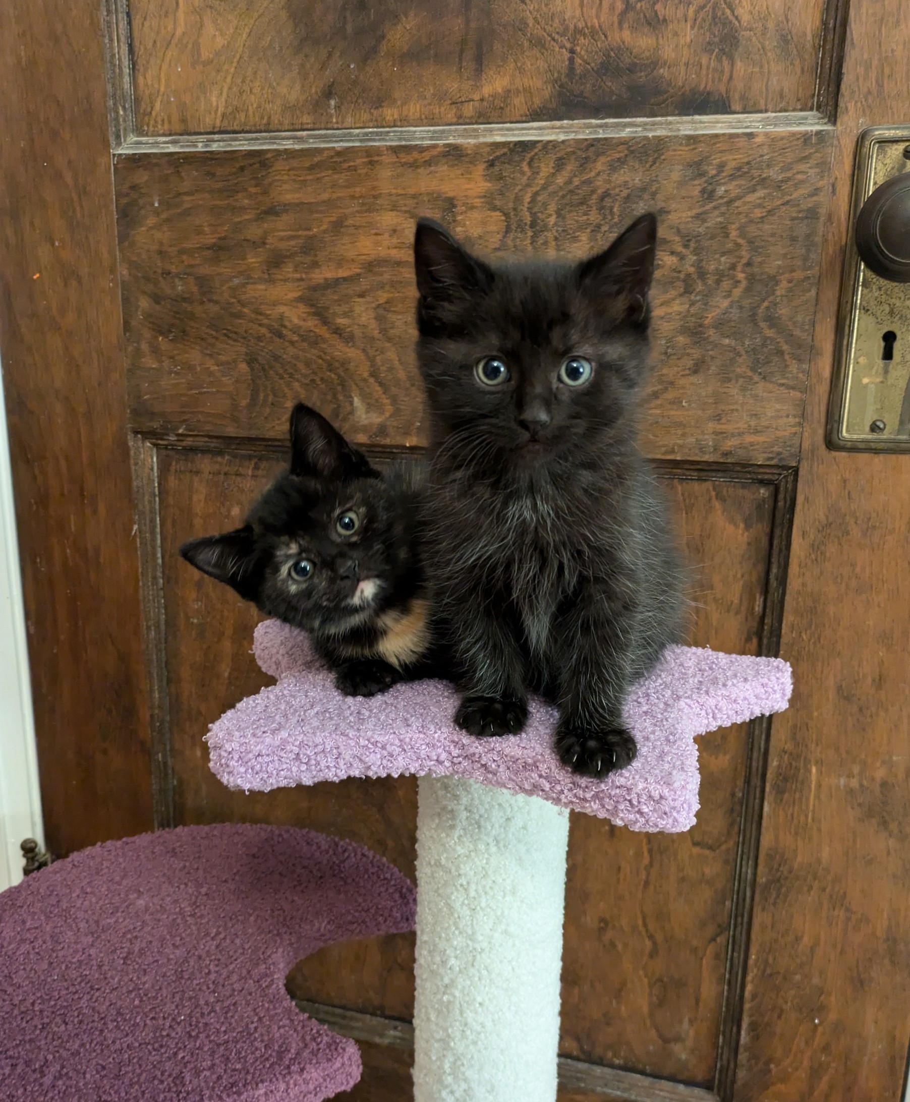 It is almost always better for kittens under six months to be adopted with another kitten, or into a home that has a receptive cat. They entertain and socialize one another, and keep each other company when you are away. Not sure? Read this short article about the advantages of adopting two kittens: http://www.kittenlady.org/twokittens