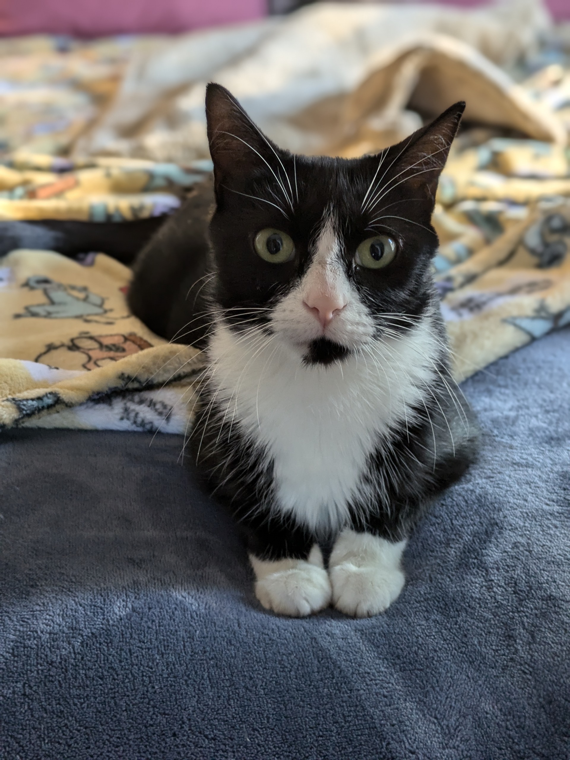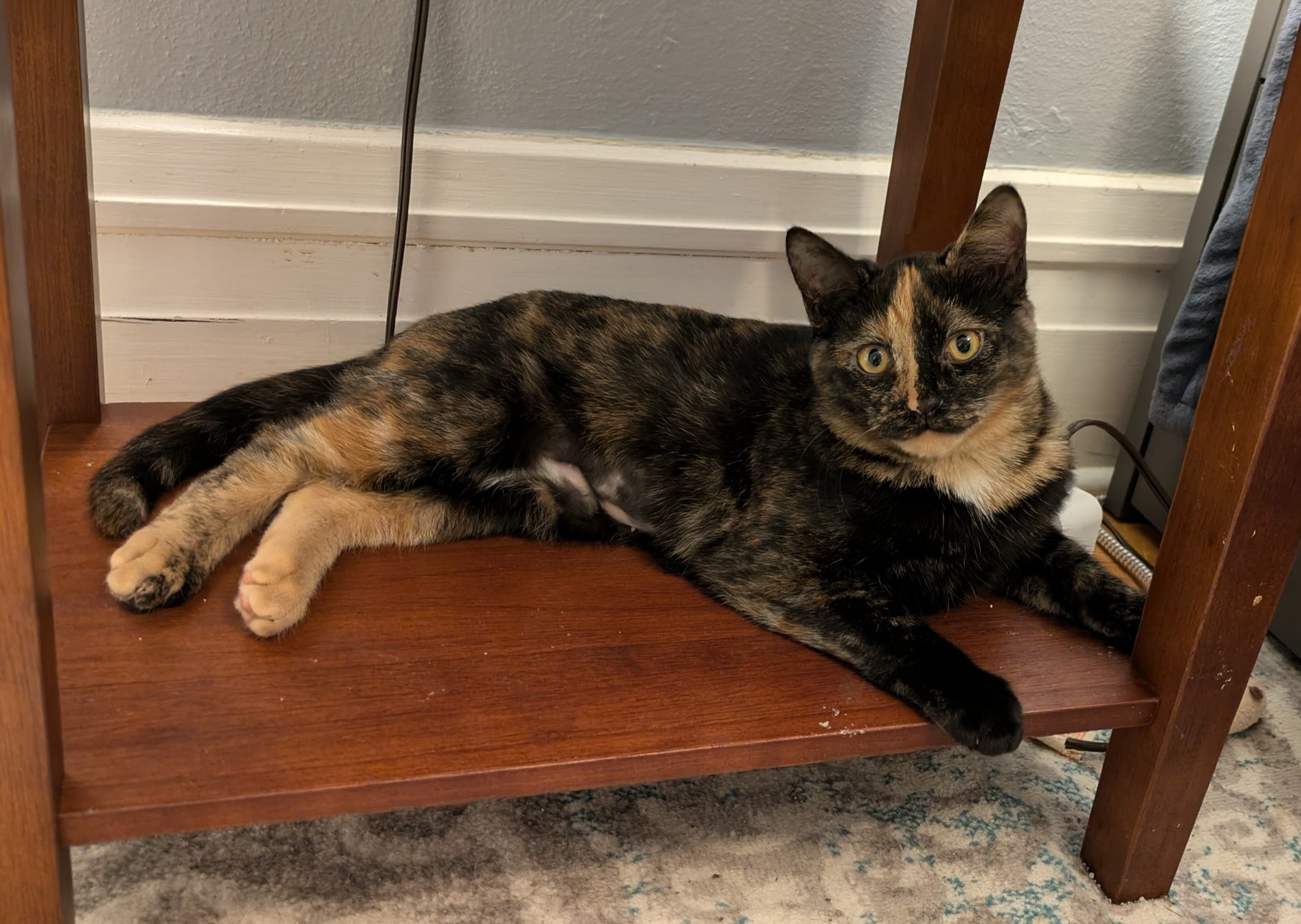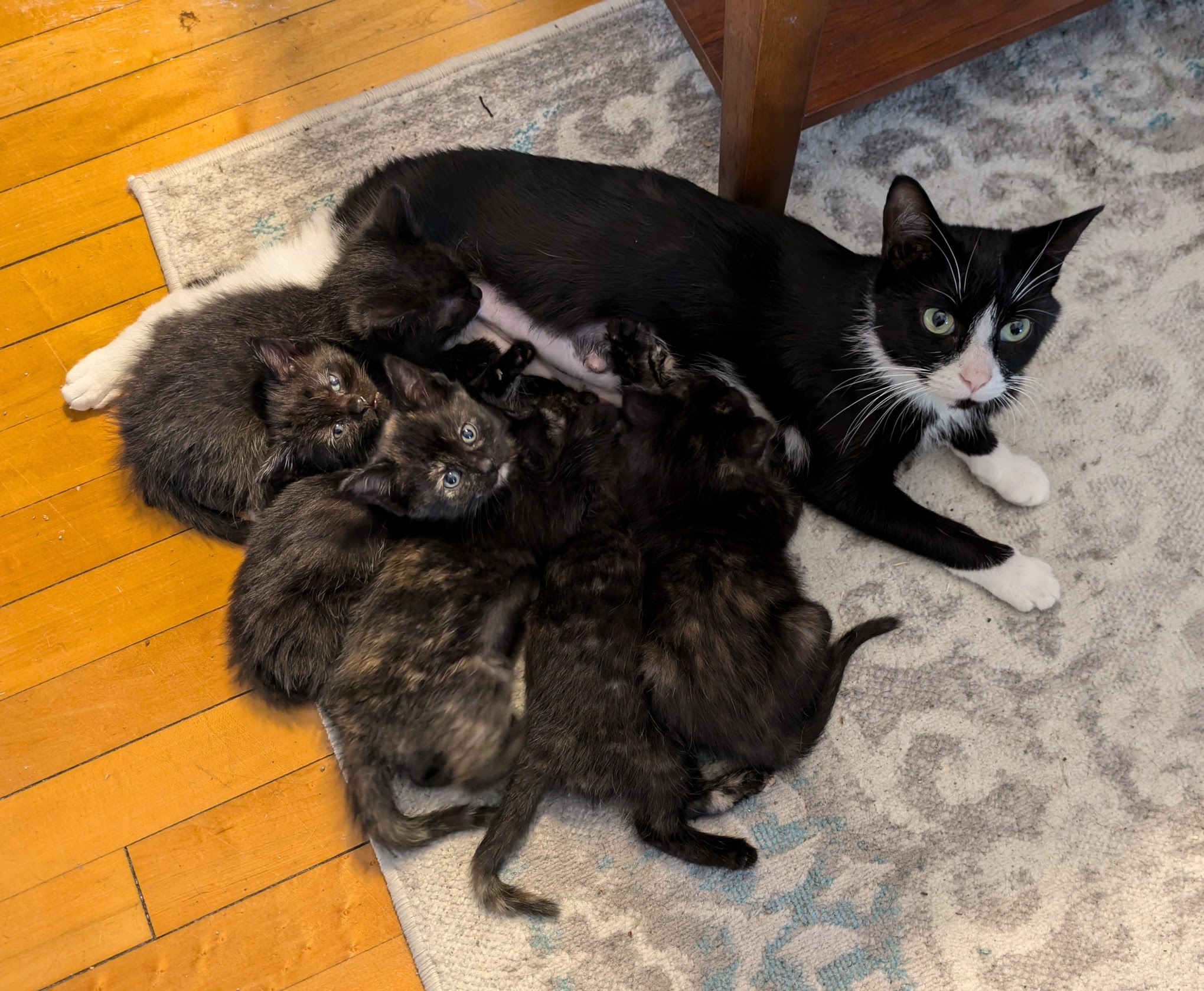 We don’t know that much about mama Makita‘s life before she came to us. We think she is between one and two years old. Her kittens, Craftsman, DeWalt, Husqvarna, Milwaukee, and Bosch, were born in September.