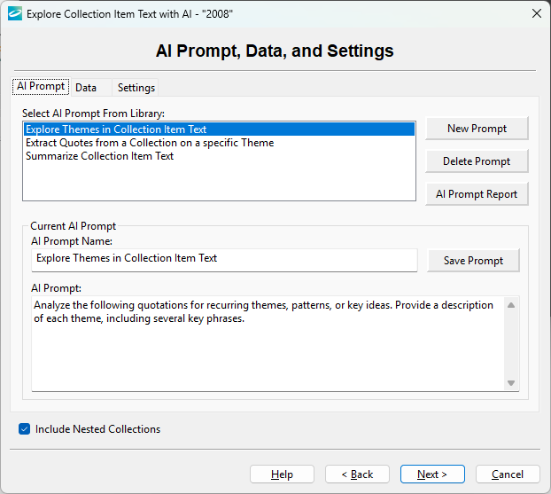 AI Prompt, Data, and Settings